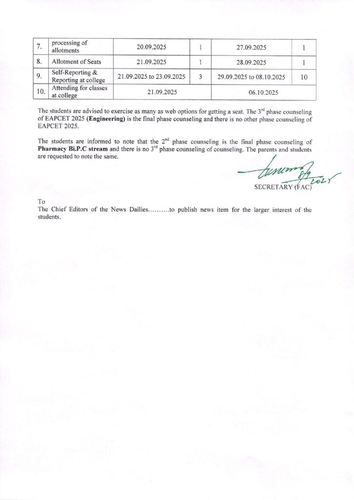 Students must carefully check the counseling schedule published on APSCHE’s official website and in newspapers.